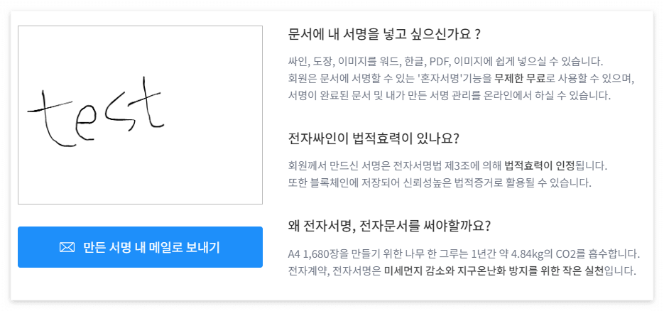 친환경 무료 전자서명 서비스. 비회원도 서명가능, 법적효력 인증, 개인신분인증 및 복수발송 기능까지 한번에!