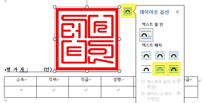 - 이런 경우 이미지를 클릭한 상태에서 '레이아웃 옵션' 선택 → '텍스트 뒤' or '텍스트 앞' 을 선택하면 된다.
